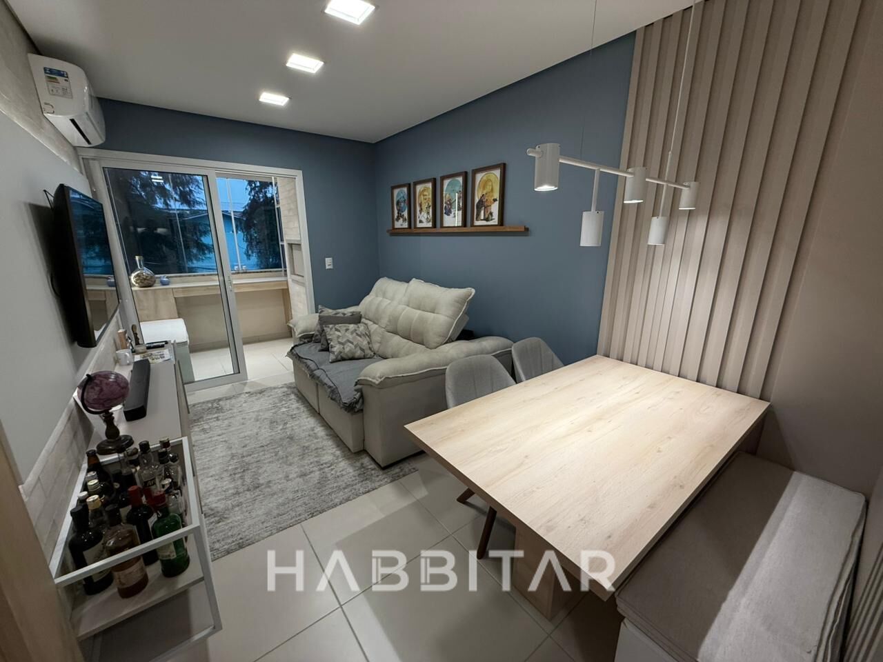 Permanecem todos os móveis sob medida, 3 aparelhos de ar condicionado e iluminação completa.
