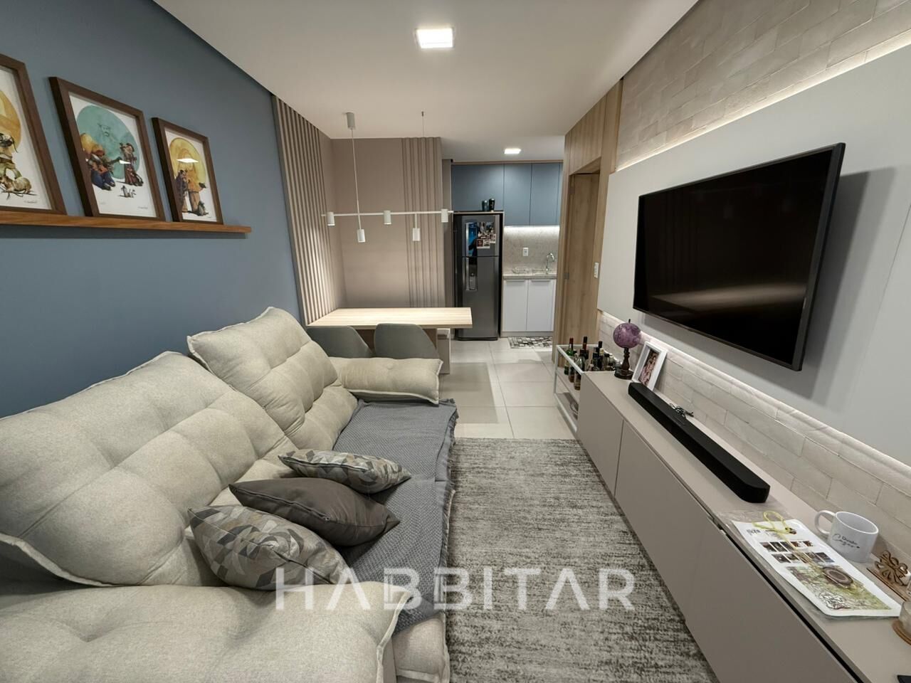 Possui 63,50 m² de área privativa distribuídos em dois dormitórios, sacada fechada com churrasqueira, sala de estra e jantar, cozinha, lavanderia e banheiro.