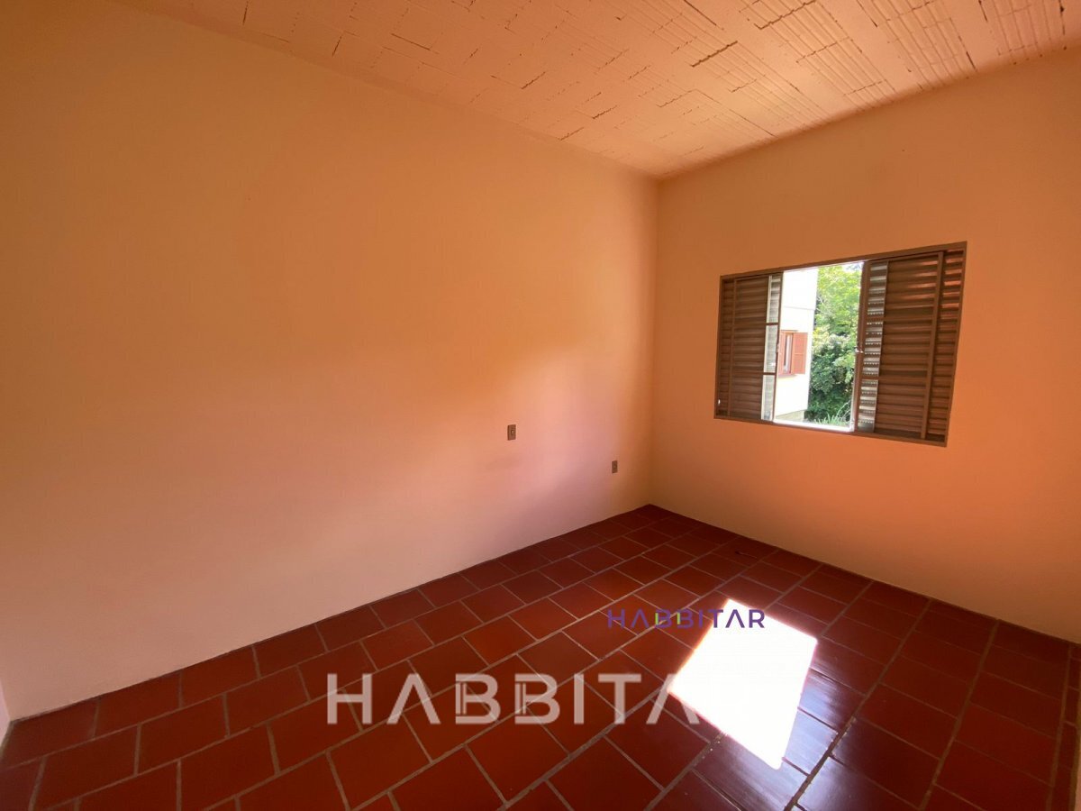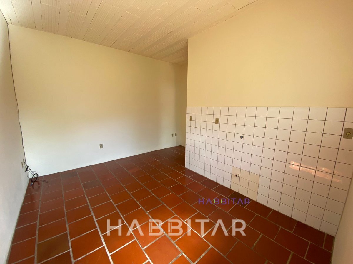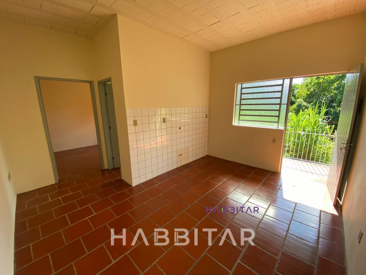 Apartamento térreo (sobsolo) no Bairro Primavera, com um dormitório, sala e cozinha integrados e banho social.