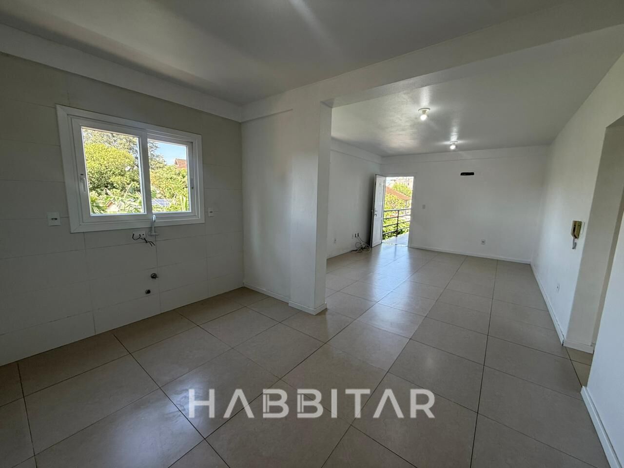 Dois dormitórios , sendo um deles suíte, sala de estar, cozinha integrada, banheiro, lavanderia e churrasqueira.