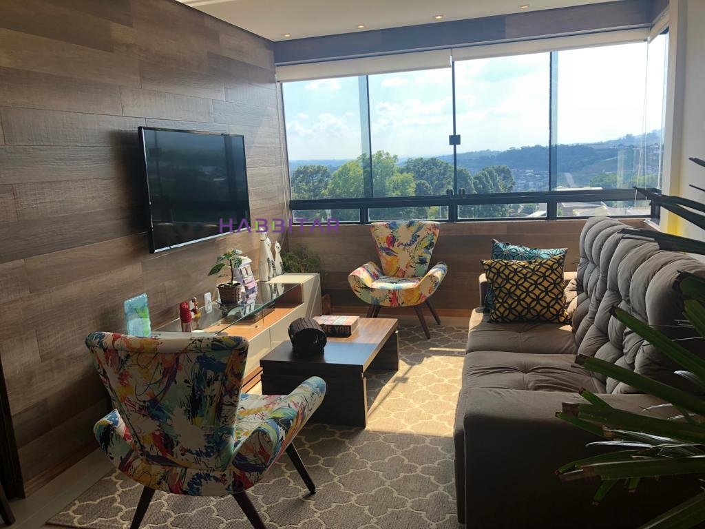 Apartamento semi mobiliado, com três dormitórios, sendo um deles suíte, sala de estar, sala de jantar e cozinha com churrasqueira, lavanderia e banho social.