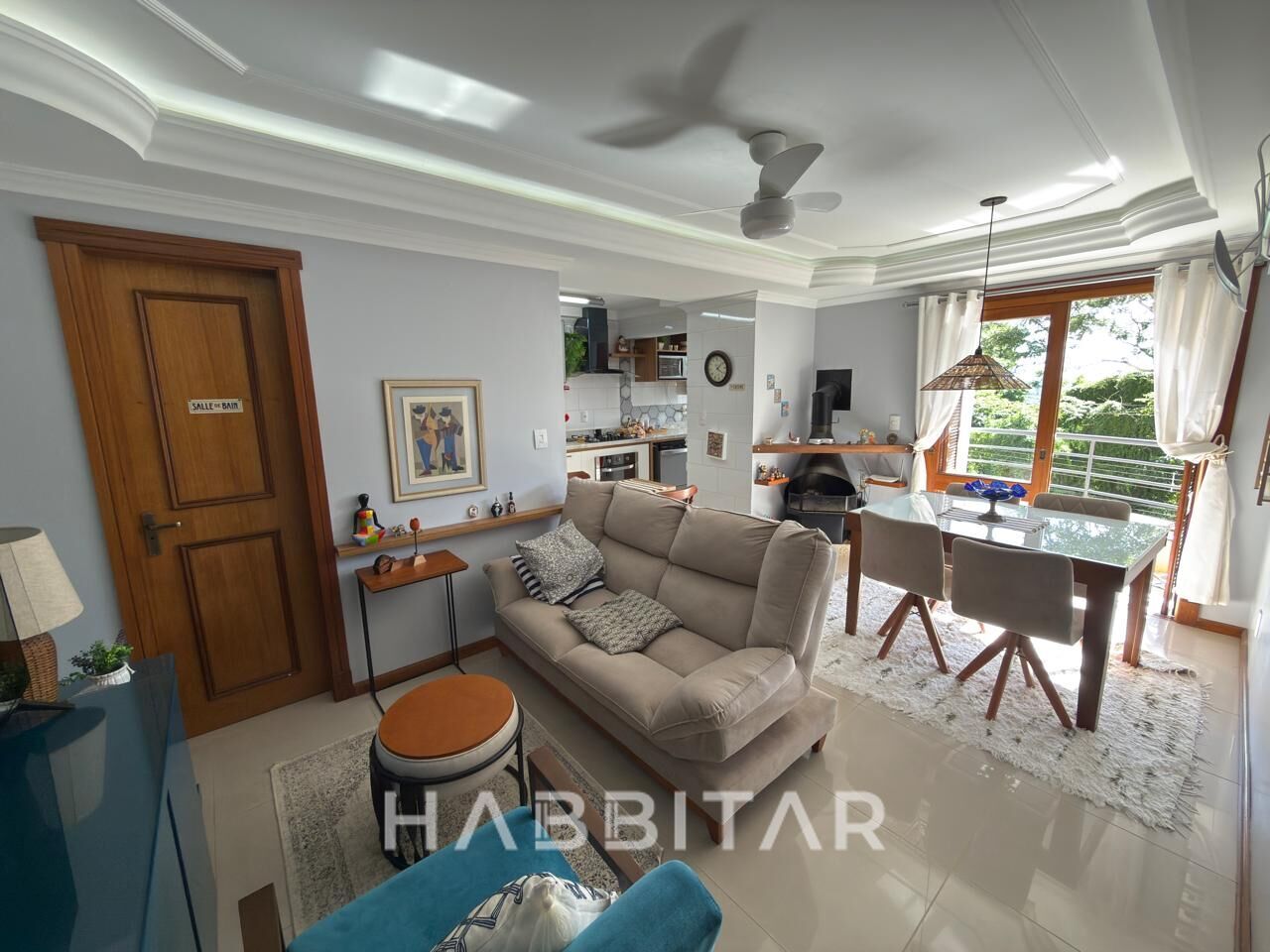 Permanecem os móveis e eletrodomésticos.