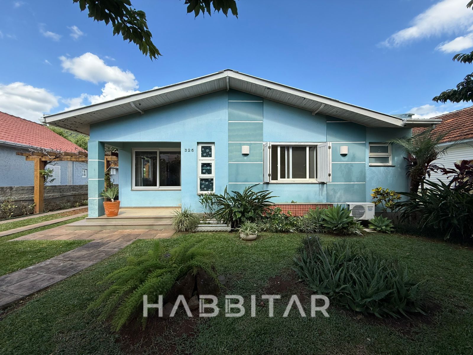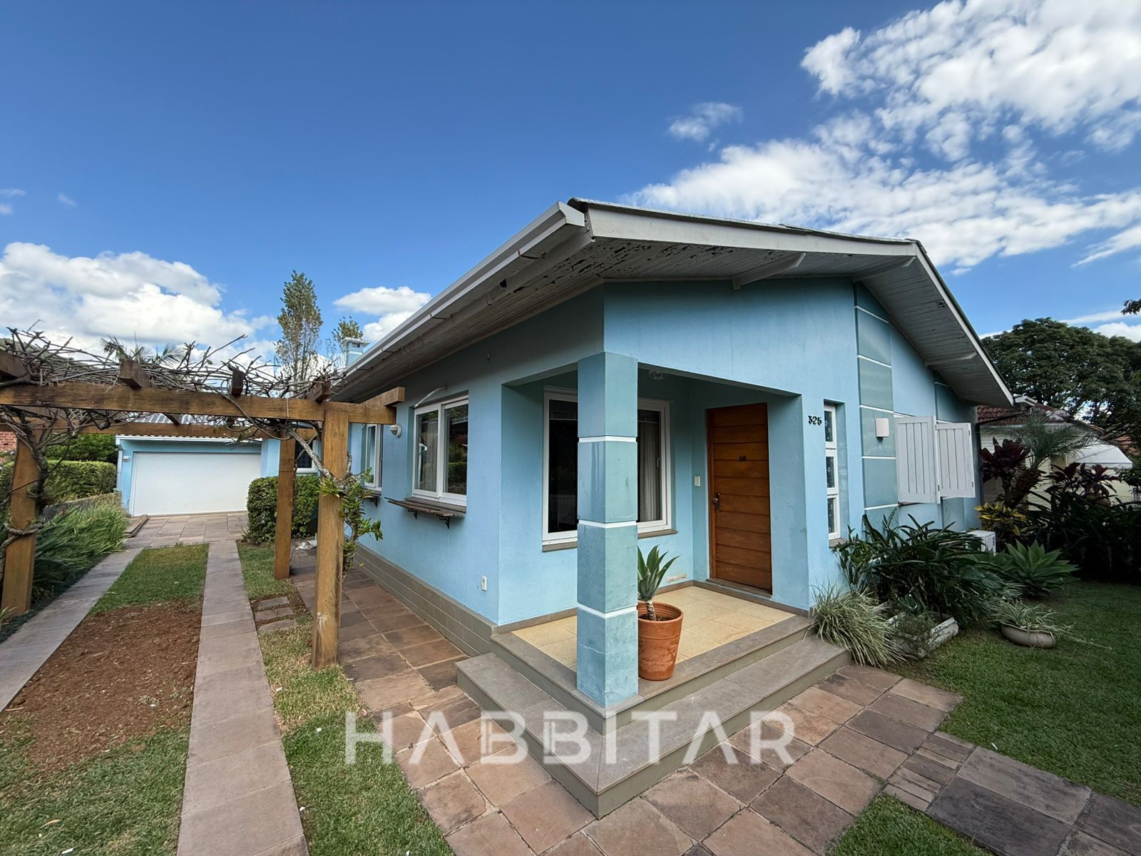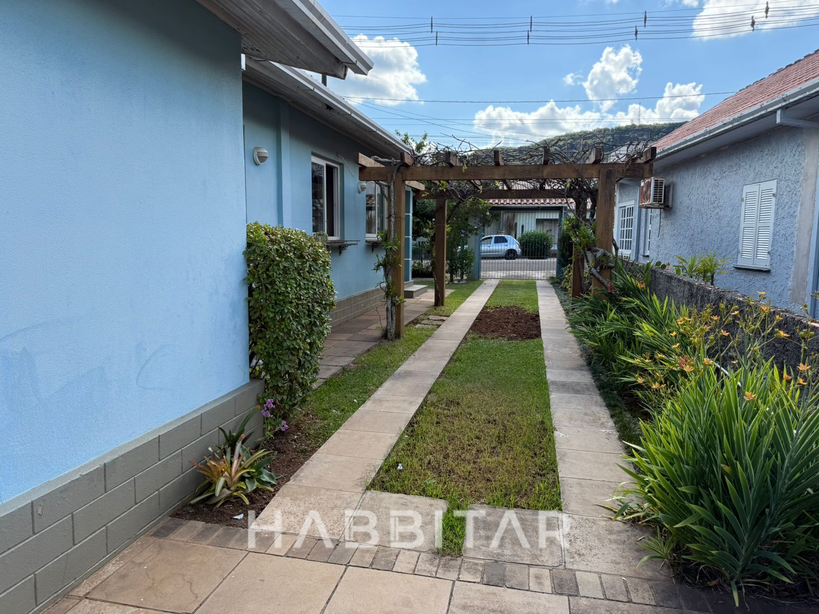 Imóvel totalmente murado com garagem para 3 carros e ampla área gourmet com belo jardim e espaço para piscina.