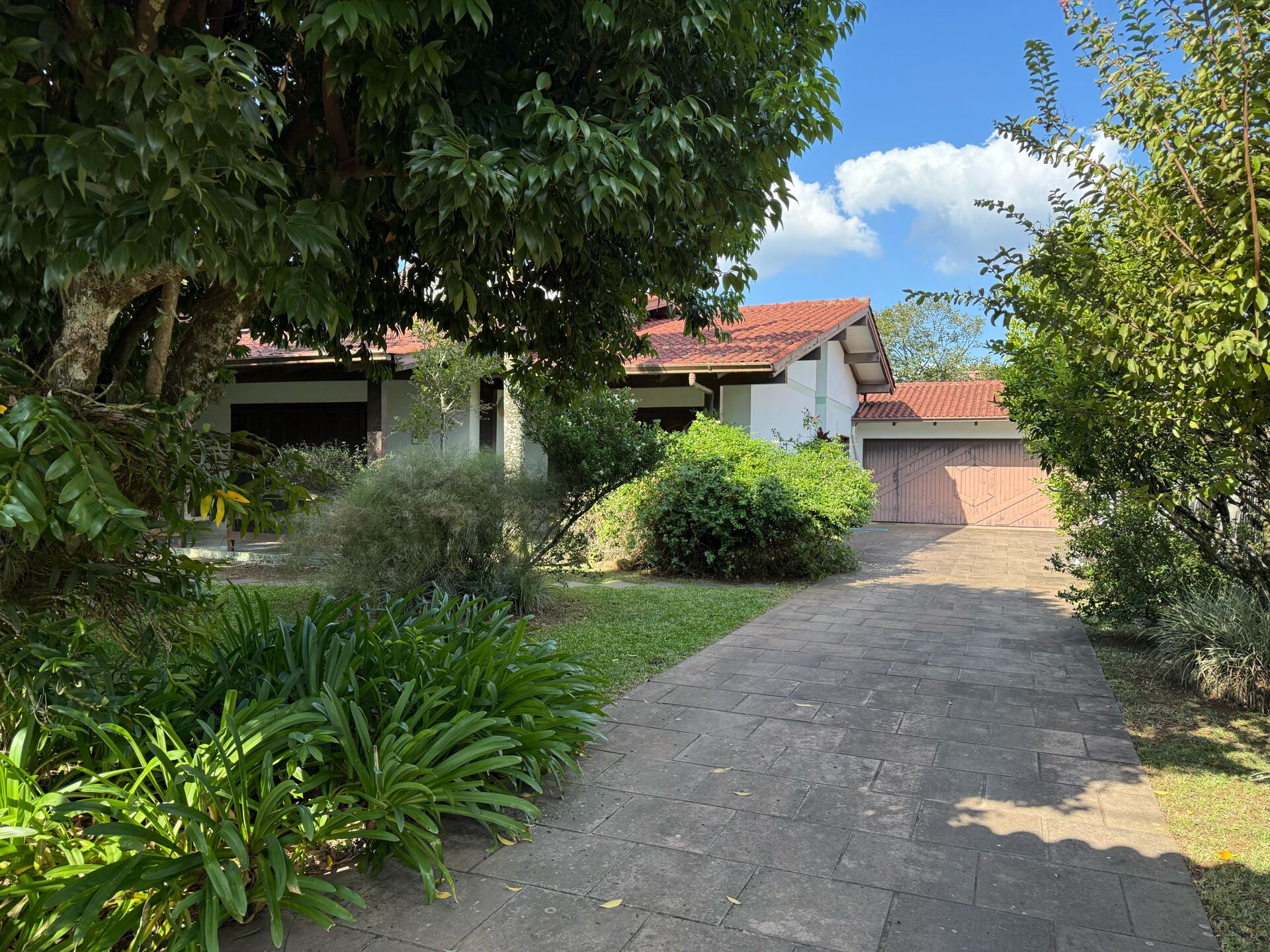 Residência no Bairro Travessão, com 330m², 4 dormitórios, um deles suíte, e outrosuíte com closet. Sala de estar com lareira e jardim de inverno, cozinha, lavanderia e banho social. Gás central. Salão de festas com banheiro, churrasqueira e fogão campeiro. Garagem para dois carros. Piscina. Terreno medindo 900m², cercado e murado.